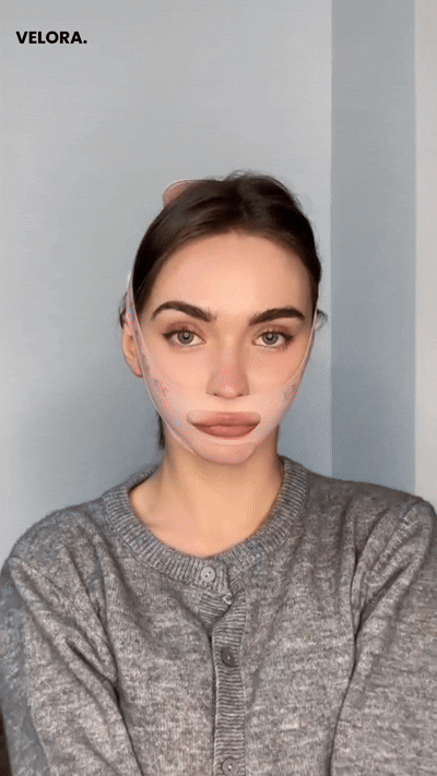 Velora, kolajen destekli özel kumaşıyla cildi nazikçe sararak yüz hatlarının daha belirgin görünmesine yardımcı olur. Düzenli kullanımda cildi toparlar, çift çene görünümünü azaltır ve daha sıkı bir ifade kazandırır.